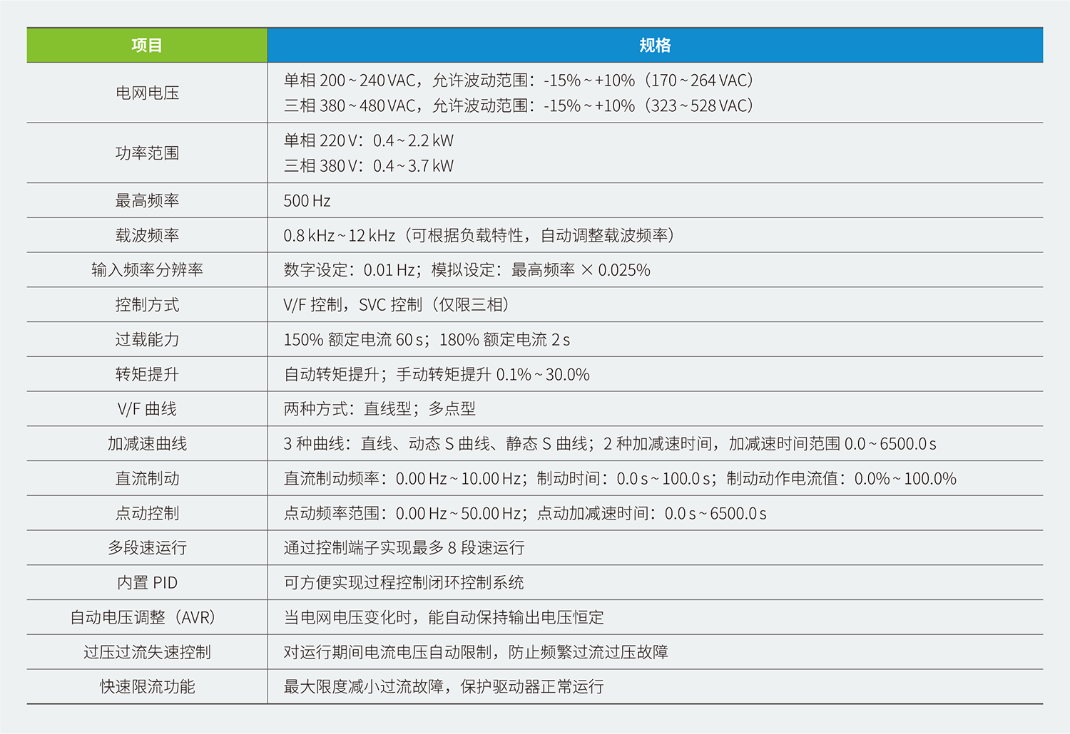 6、更大的額定電流設(shè)計(jì),過(guò)載電流更大,加速時(shí)間更短