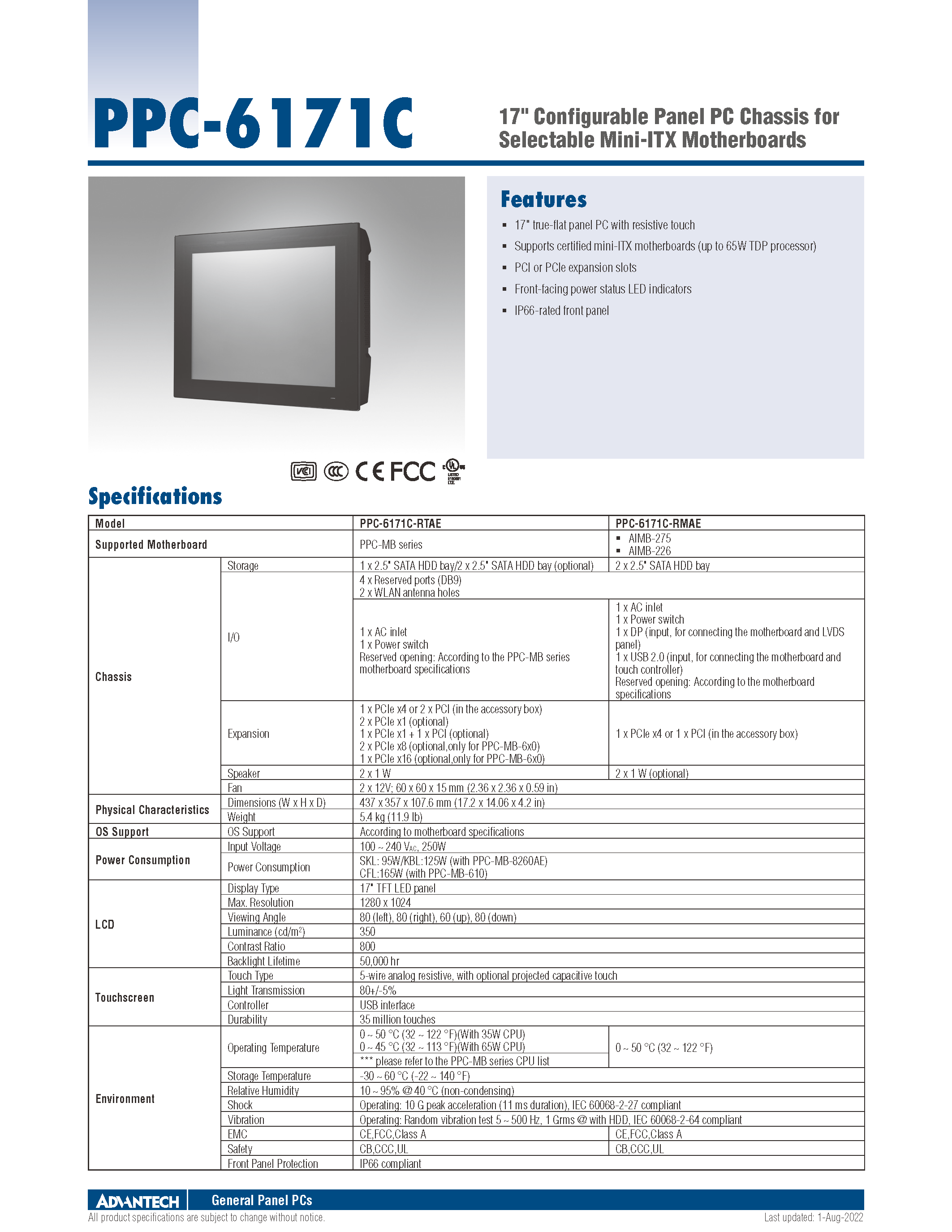 17" 可配置工業平板電腦 兼容多種 Mini-ITX主版