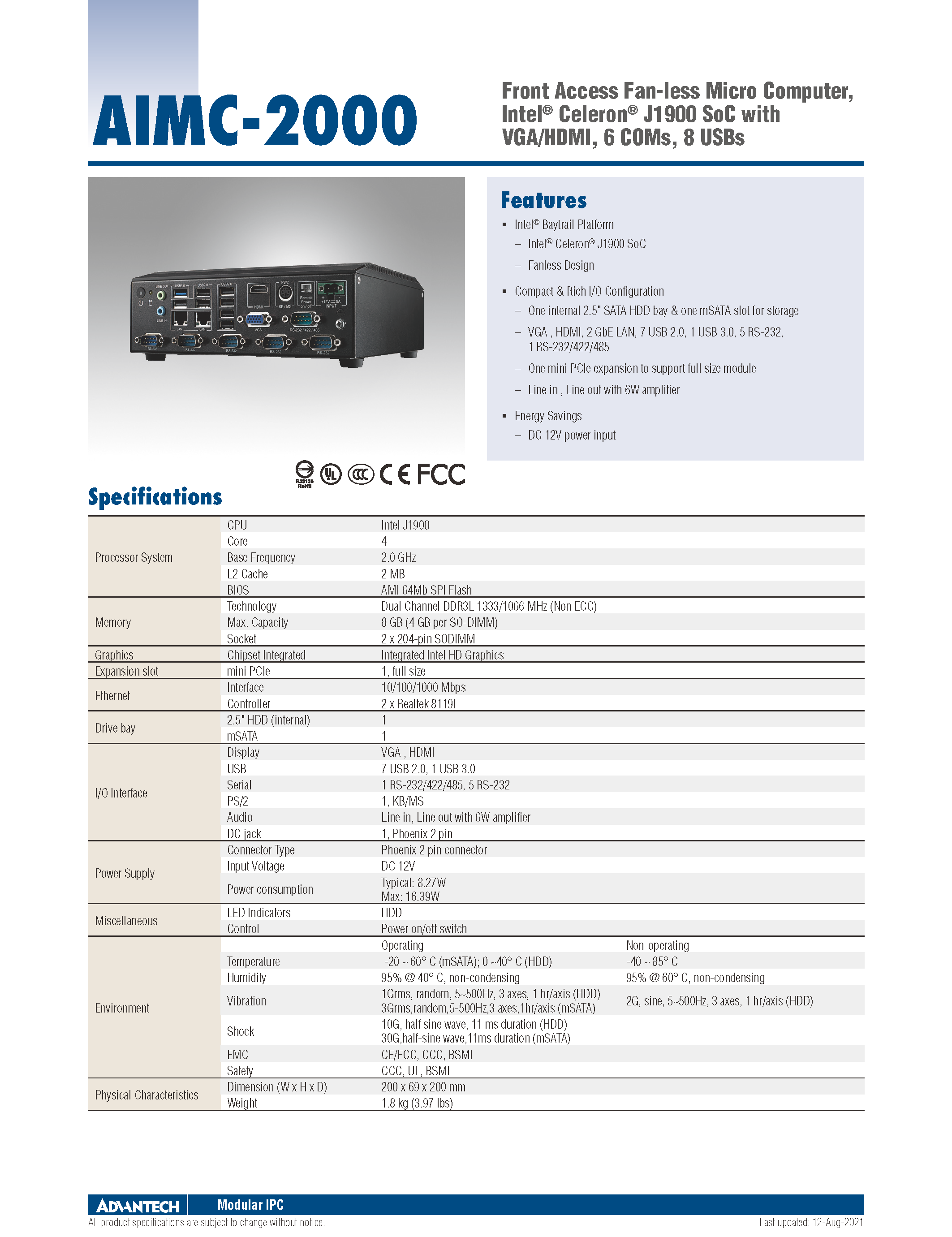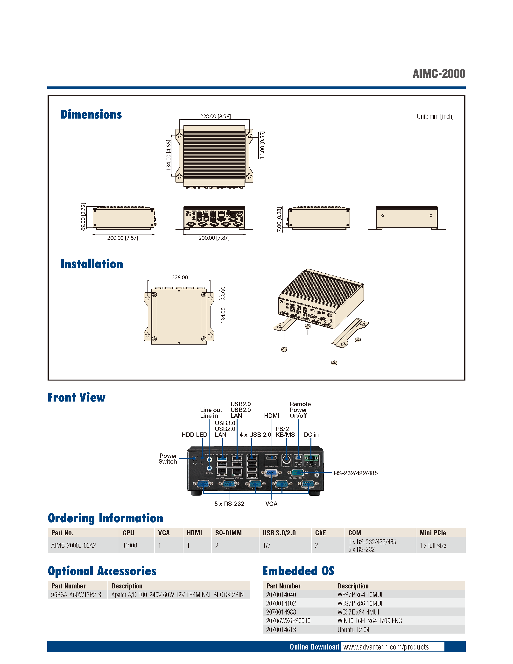 Front Access Fan-less Micro Computer, Intel® Celeron® Quad Core J1900/N2807 SoC with VGA/HDMI, 6 COMs, 8 USBs
