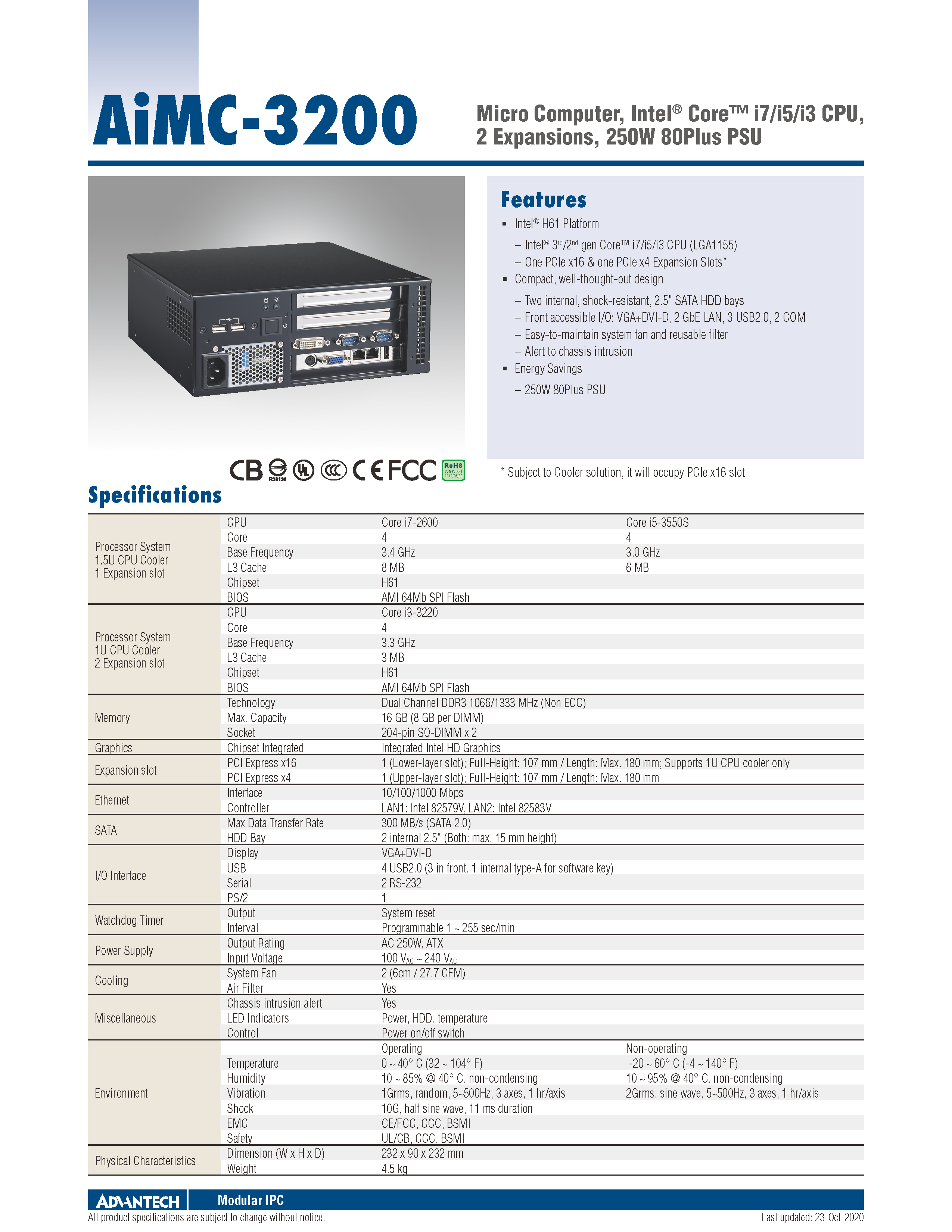 - Intel® 第3/第2代Core™ i7/i5/i3 CPU (LGA1155)
