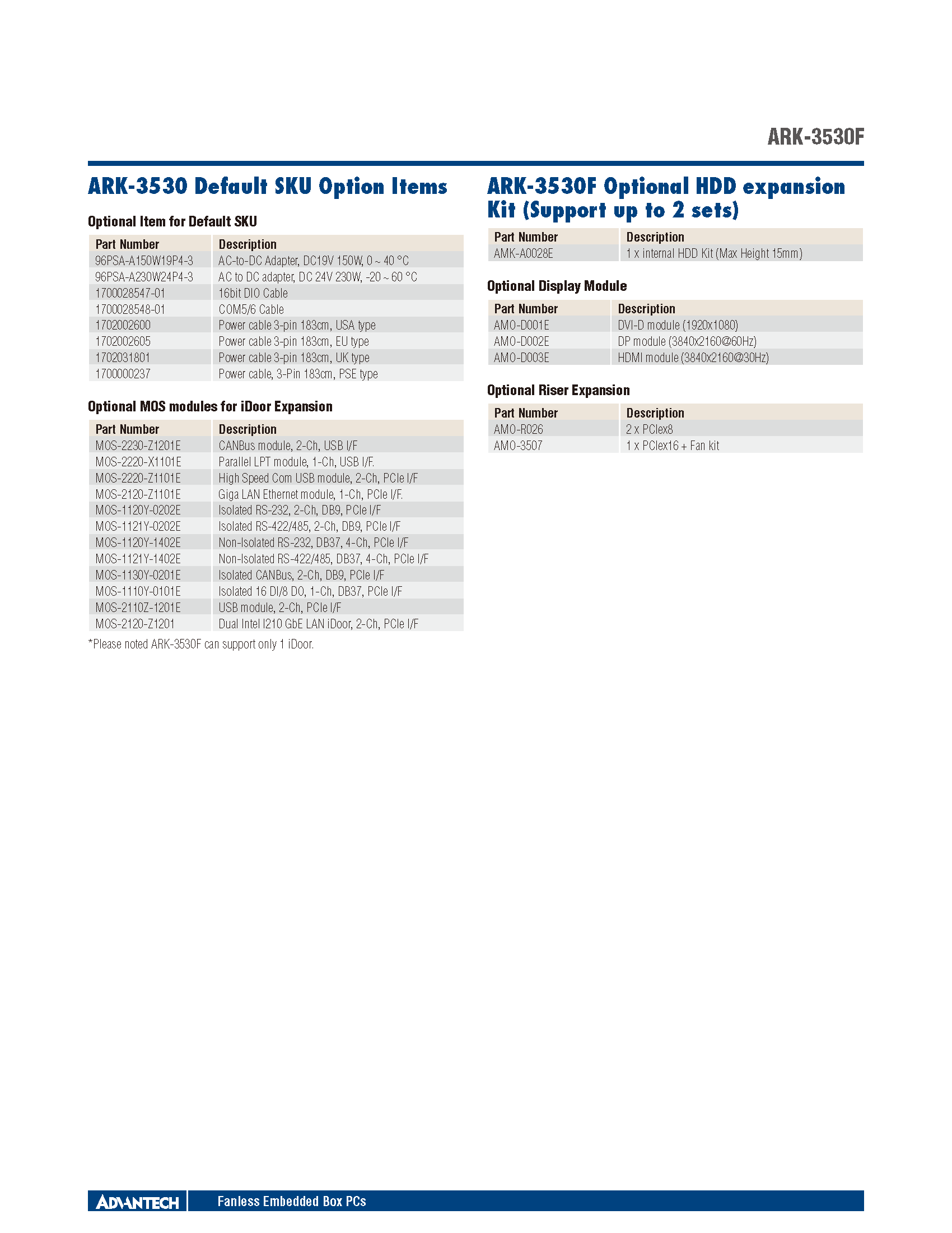 - Advantech iDoor module compatible